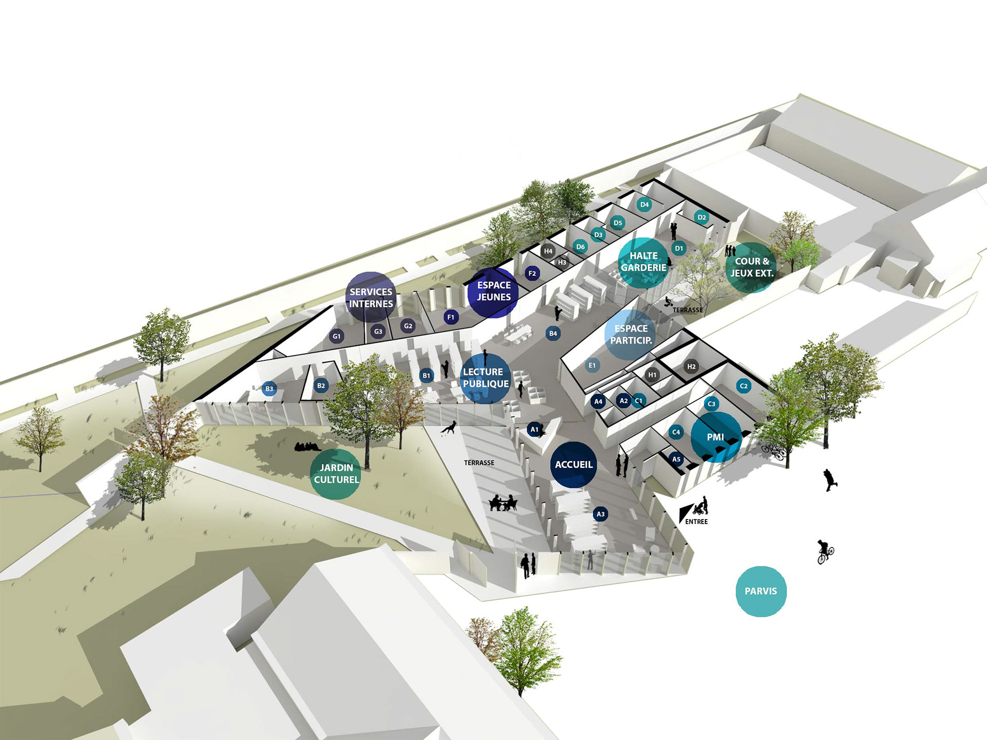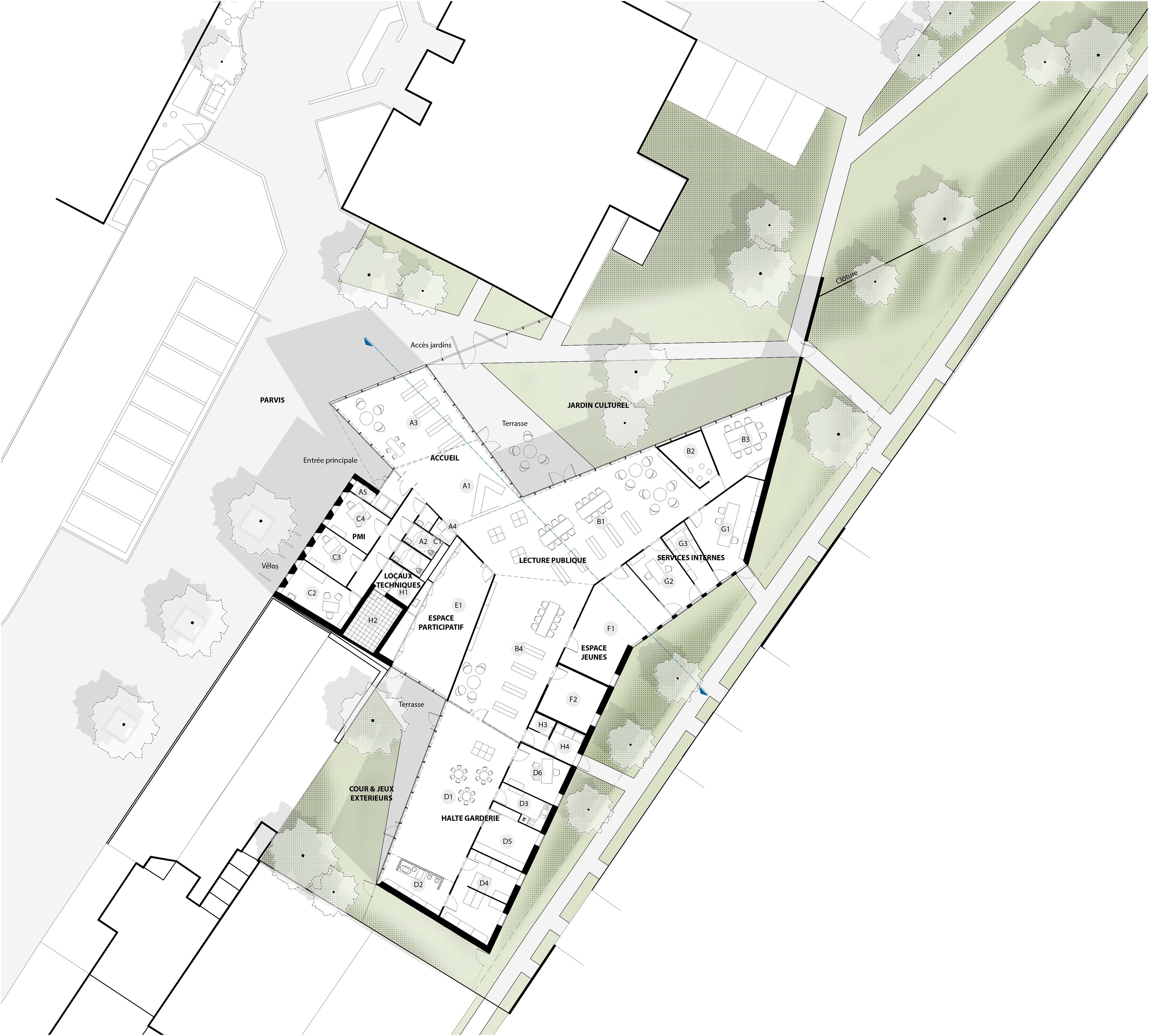 Programme : Construction d’un pôle socio-culturel Surface : 680 m² SDP / Budget : 1 465 000 €HT Maîtrise d’ouvrage : Ville d’Abscon Maîtrise d’ouvrage : Wonk architectes, Projex ingénierie Concours / 2016